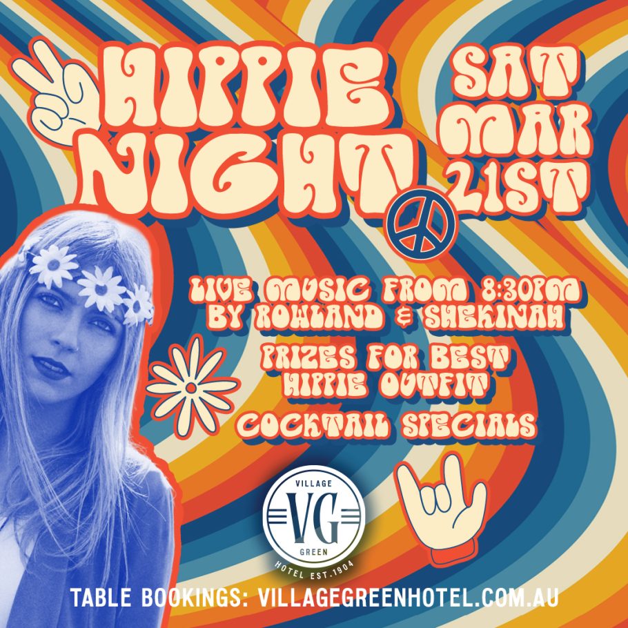 Time to channel your inner flower child and spread some peace, love, and groovy vibes at the Village Green Hotel! We’re taking a trip back to the era of bell-bottoms and daisy chains for a night that’s all about good music and great energy.
