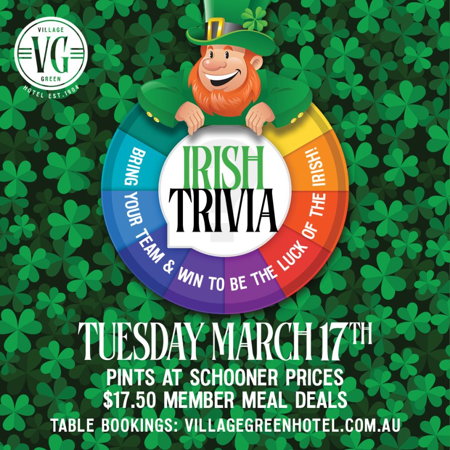 Think you know your shamrocks from your shillelaghs? It’s time to put that brainpower to the test at the Village Green Hotel for a St. Paddy’s Day to remember!
