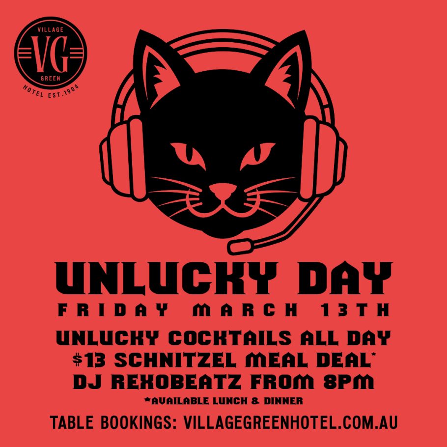 Join us at the Village Green Hotel this Friday the 13th for a day full of killer deals and late-night vibes. Whether you’re avoiding black cats or just looking for a great night out, we’ve got you covered.
